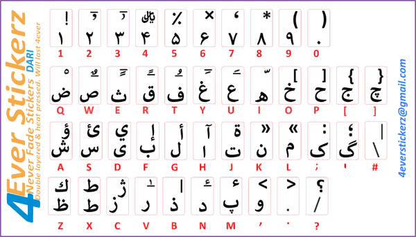 Double layered and heat pressed; these stickers will not fade or peel with use over time. The stickers are designed to be half the size of a standard keyboard which makes them ideal for backlit keyboards. The characters are large and clear. The vinyl used is waterproof and antibacterial. The images are for languages that use the Arabic alphabet, with the exception of Hebrew. I can do any language or symbols or marks as you require. I design and cut the stickers, so I have full control on quantity and design.